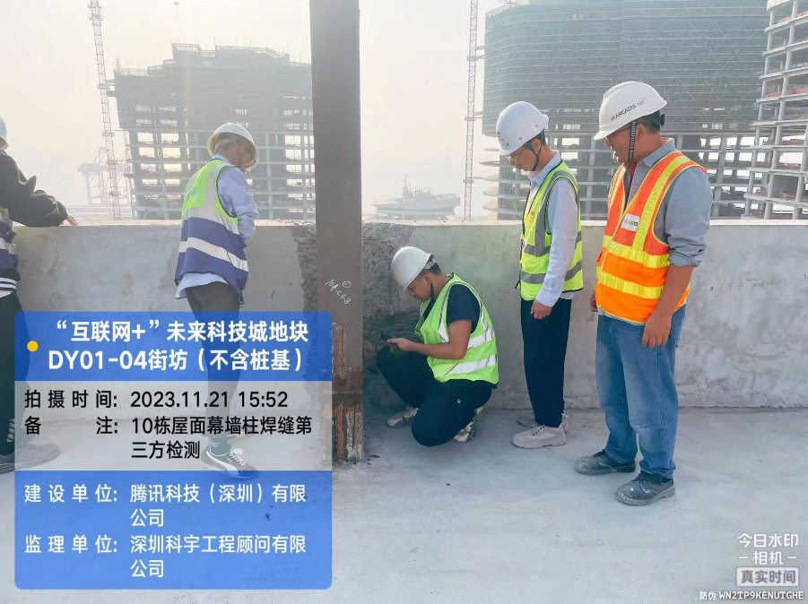 腾讯未来科技城10栋屋面幕墙钢柱超声波探伤检测