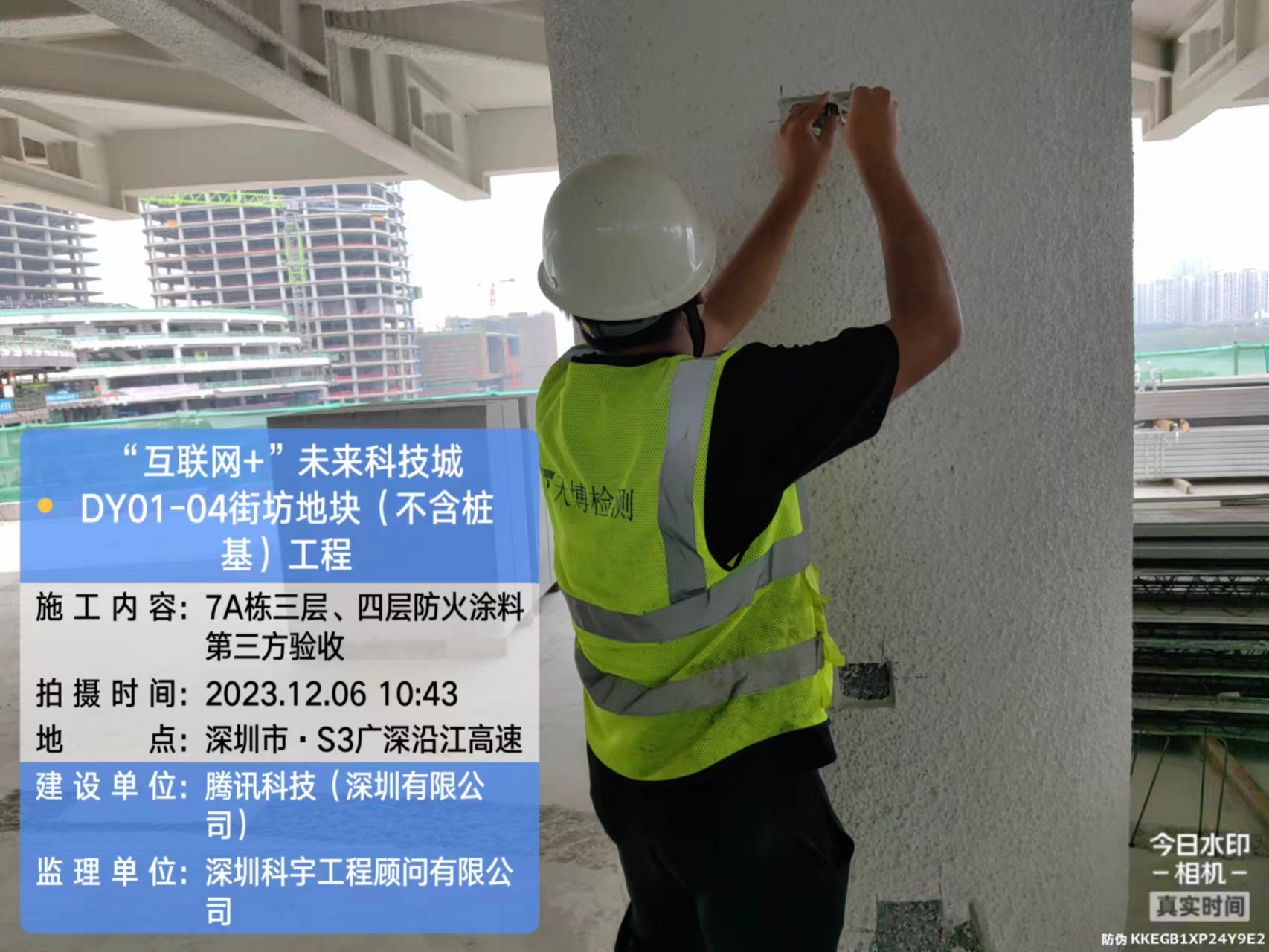 腾讯未来科技城7A栋3/4层防火涂层厚度检测