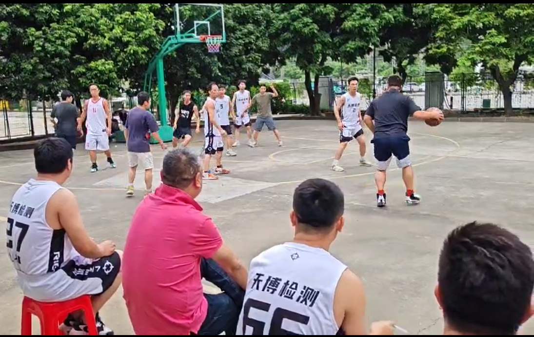 2024年5月17日下午6点,明新工业园,微风,气温28°,适宜室外运动。天博检测与兄弟公司鑫盛源即将迎来了一场双方期待已久的篮球赛。