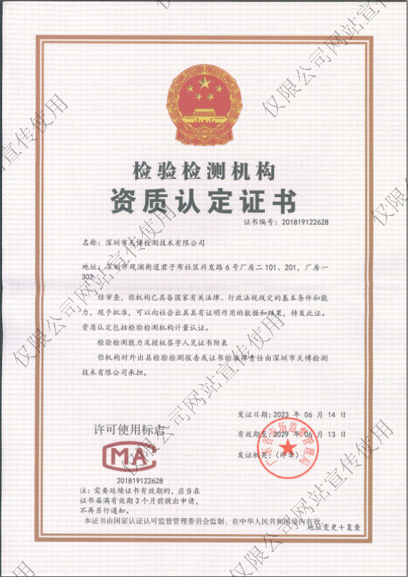 检验检测机构资质认定证书