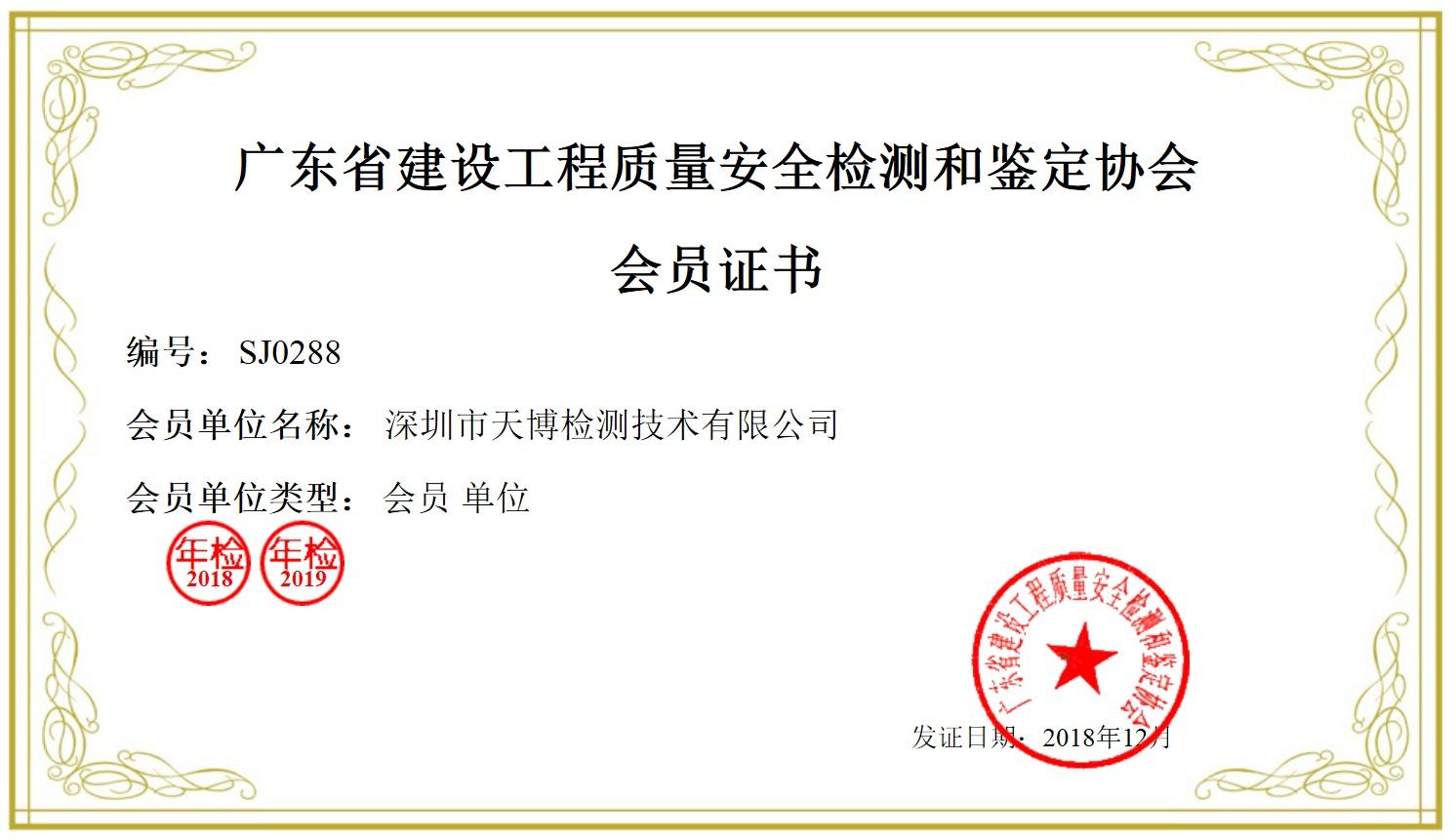 广东省建设工程质量安全检测和鉴定协会会员证书